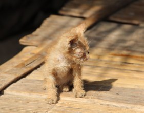 My cat, Miemi, looks like the little kitten when she was tiny. Now Miemi has grown up and is 10 years old. God bless the little kitten to live healthily like Miemi and the boy to be somebody when he grows up.