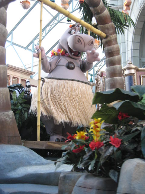 Once we got out of the restaurant, we saw characters from “Madagascar” singing and dancing. Do you know which character I like most? It’s Gloria:). She is just so adorable. Look at her!