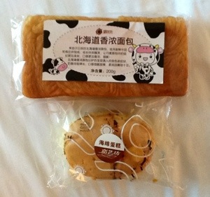 Before we got back to the hotel, Mel was worried that she might not have breakfast on the next so she bought a loaf of bread and a piece of cake.