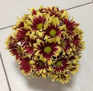 I had this little crysanthemun arranged it into a dome shape. I always love something that is fat and round:).