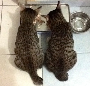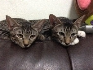When Mel and I first brought them in, they were only 9 weeks. When I woke up in the morning, no matter how sleepy they were, they both would get up from under my bed and stand at the bedroom door and stare at me. Both looking sleepy.