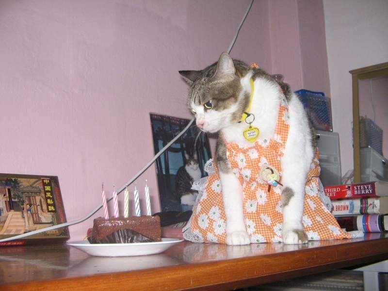 Miemi was five year old that day. She only wore the dress once. She looked so young and adorable. Mummy loves and still loves her so much. Yes, I celebrated her birthday every year. I estimated her birthday to be on 8th of October 2001. The year is definitely correct. If I am not wrong, she found me in around end of November. I guess probably she was around one month old. Perhaps I have estimated her age three weeks to a month earlier. Well, it doesn’t matter. No matter how old she is, she is still my baby, my beautiful angel.
