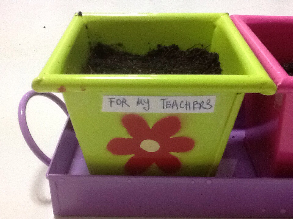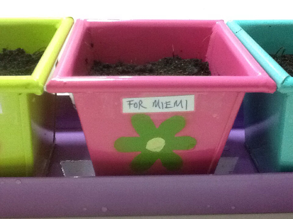 It is my first time growing plants. Thinking of showing my gratitude, therefore, I decided to grow plants. One for all my teachers, one for Mel and one for Miemi. Next Sunday is Miemi’s one year anniversary. In order to commemorate Miemi, I decided to grow a plant for her.