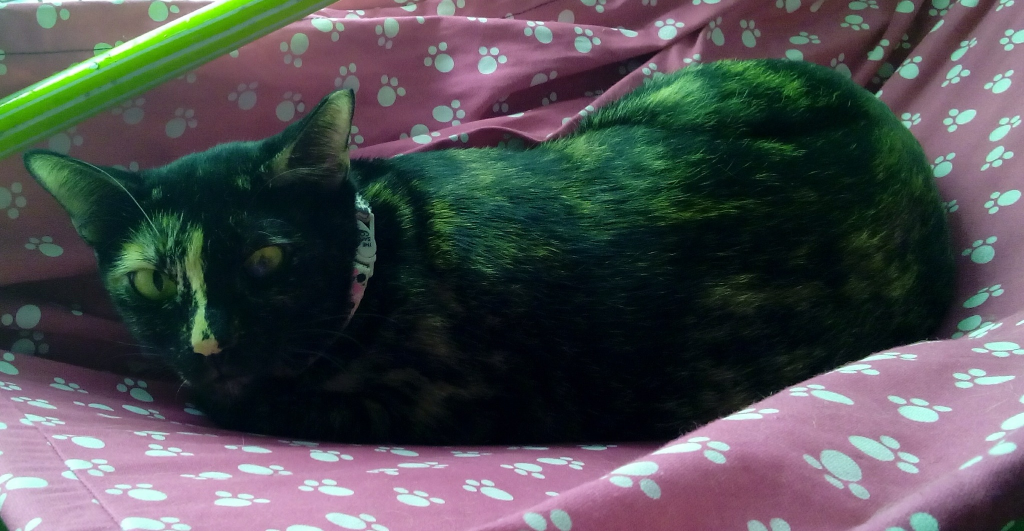 Yellow sleeping on a hammock that I recently bought for them.