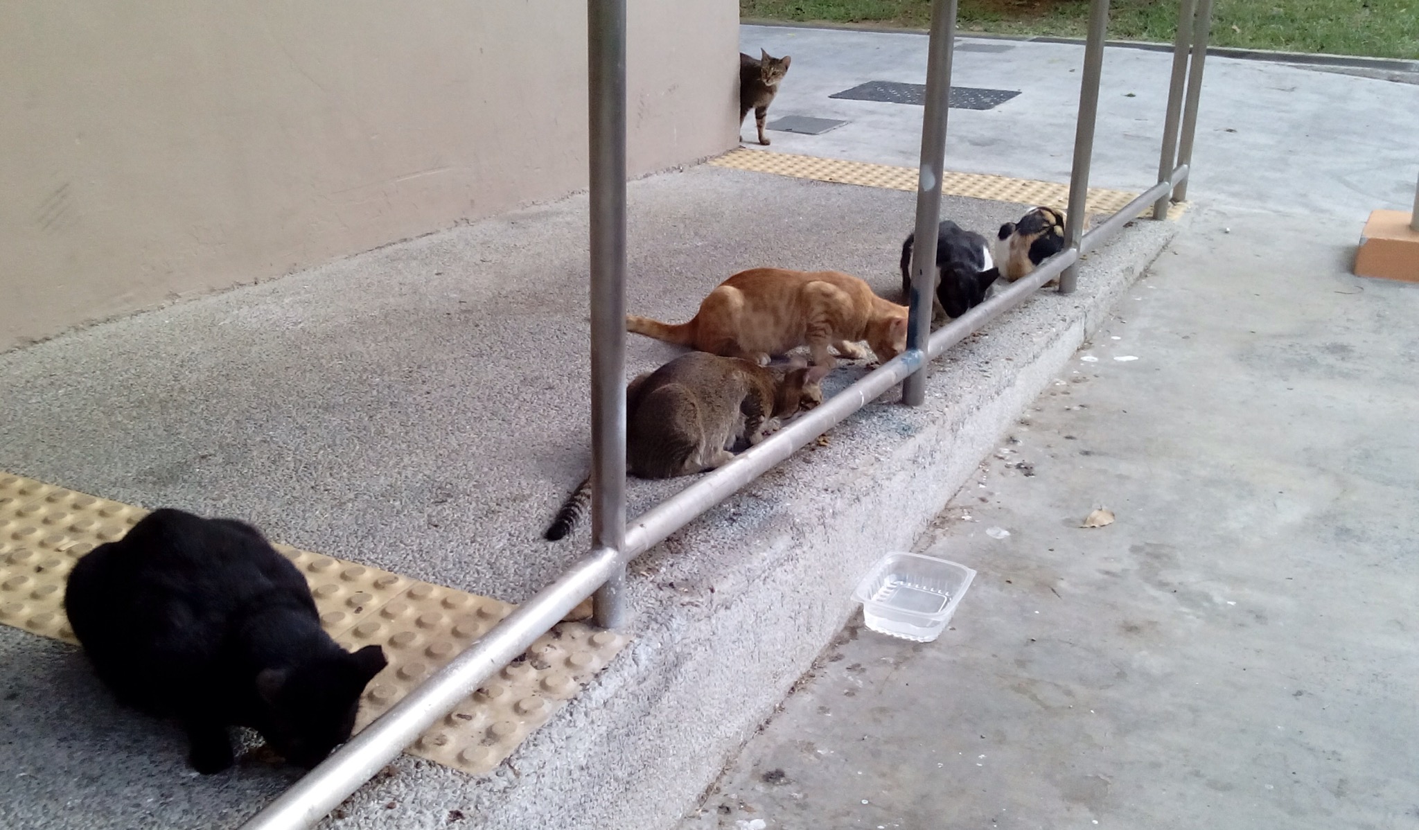 I have come across a 70+ year old lady, kicking their food away while the cat was eating. A family who has nine cats at home and they only love their cats but not the strays around their area. They too threw their food away right under my nose. They threw things at the strays and shoot them with ball bearing.