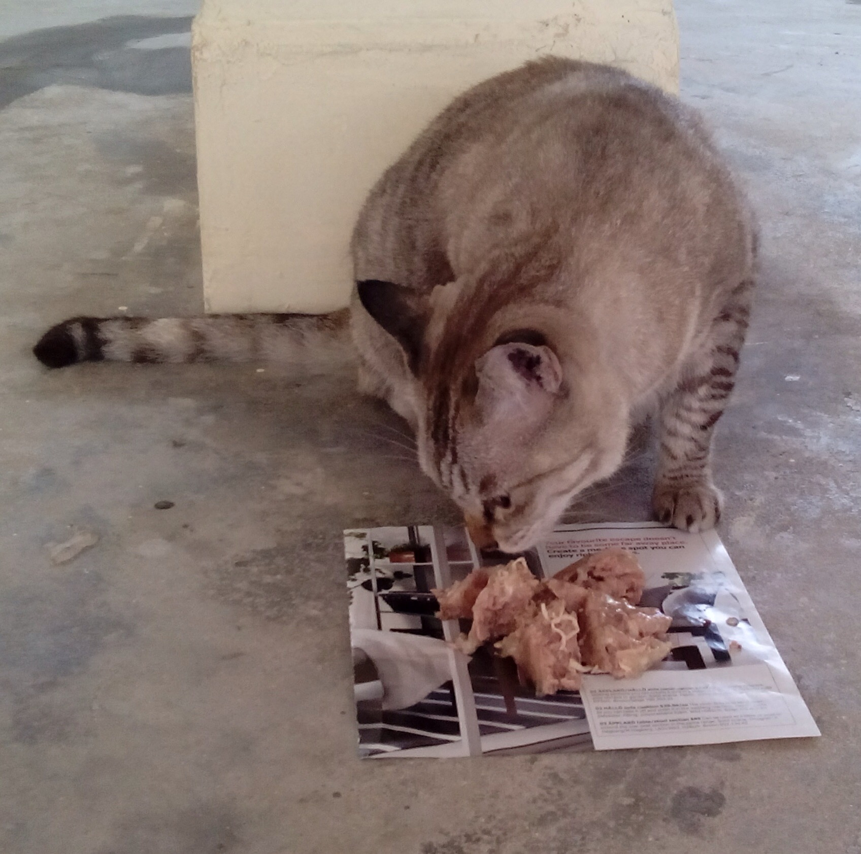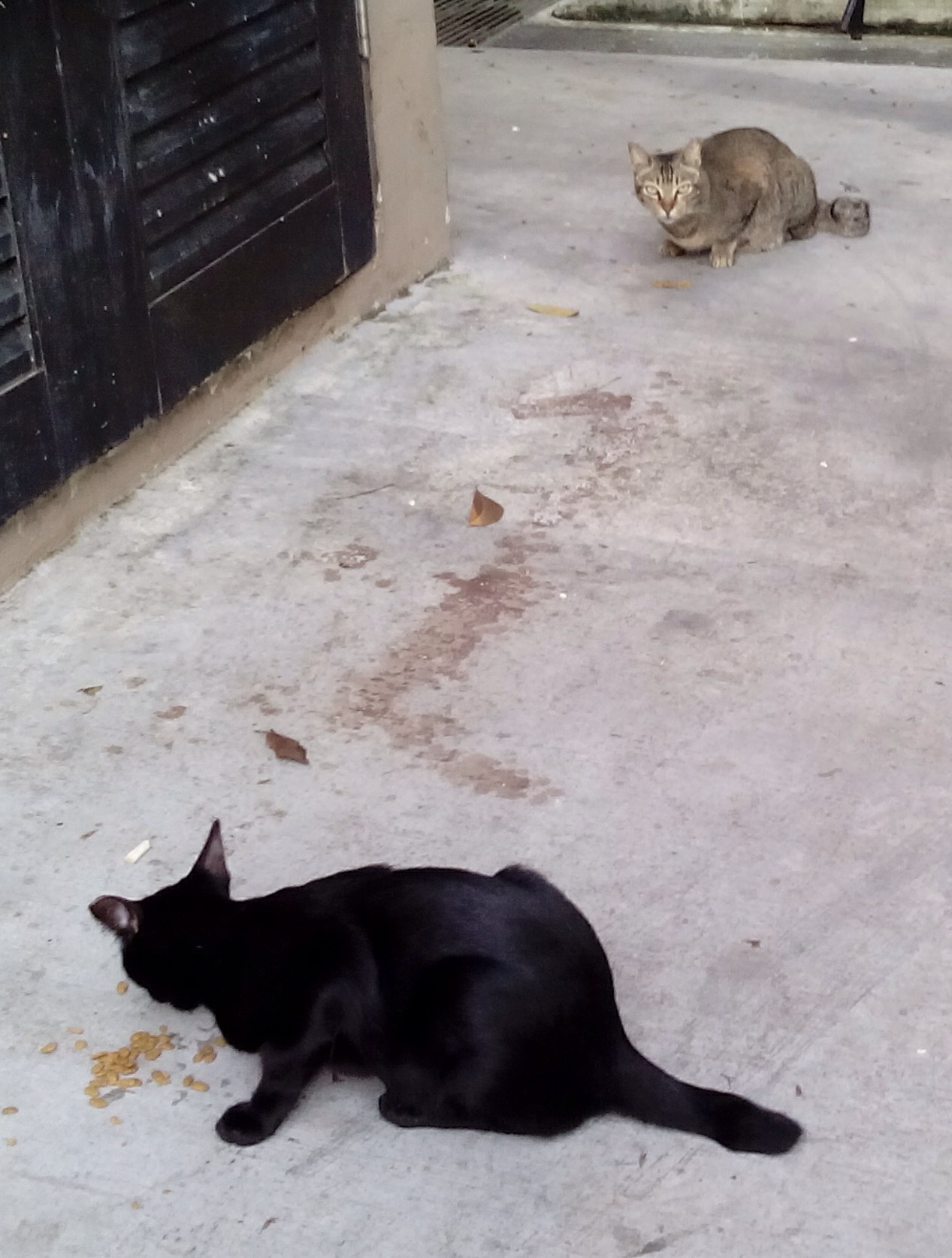 Every morning before I start my day, I would feed the cats first. First I left clean water and food for the cat/cats below my block. Next I go to Jalan Tenteram.