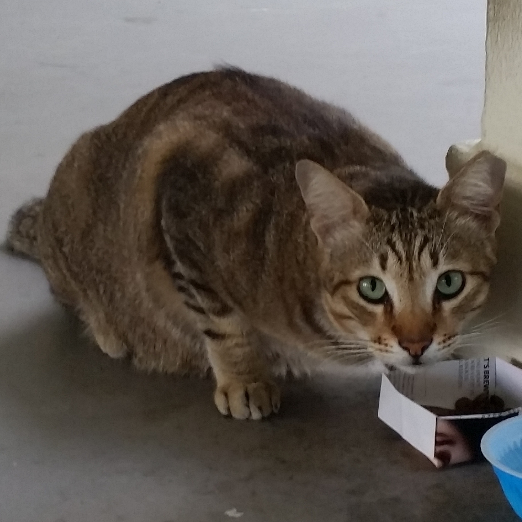 A handsome boy. He is afraid of human and loves dry food.