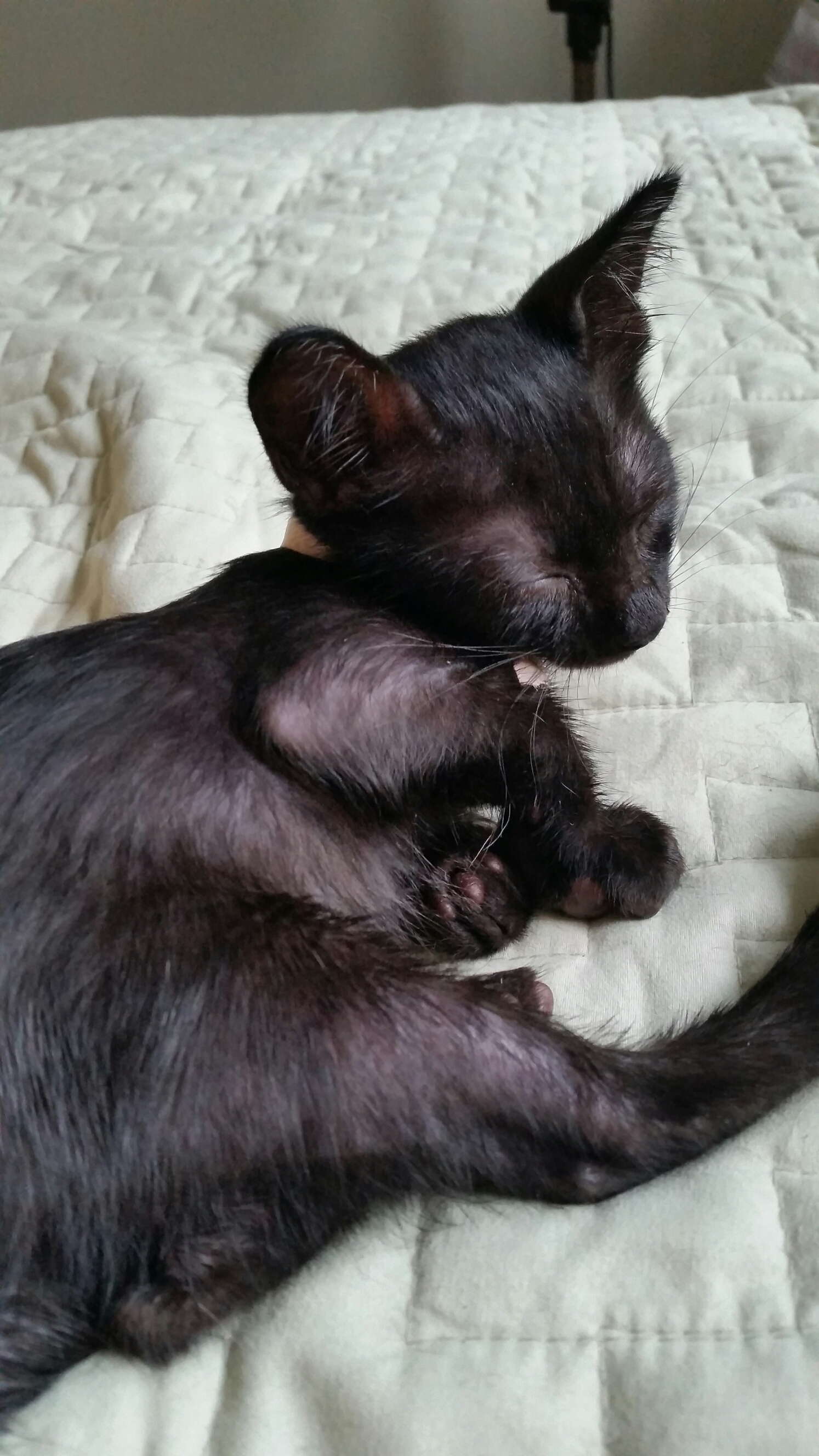 Lokit, my little princess. Lokit loves running and hopping around. And she always hits on something when she runs. She sticks with Dharma most of the time. When I am doing my feeding, I would bring both of them along. They will sleep comfortably beside me with soft music specially played for them. I will give them food and I do not feel their stress.