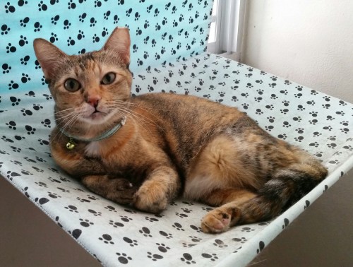 Joy is back home again. Joy escaped twice from her former adopter’s place and no preventive measures had been done to prevent Joy from climbing out of the windows. Mel and I have always try to work things out with the adopters, however, the adopters strongly refused to mesh up their windows. Joy could be a stray cat again if she keeps escaping…