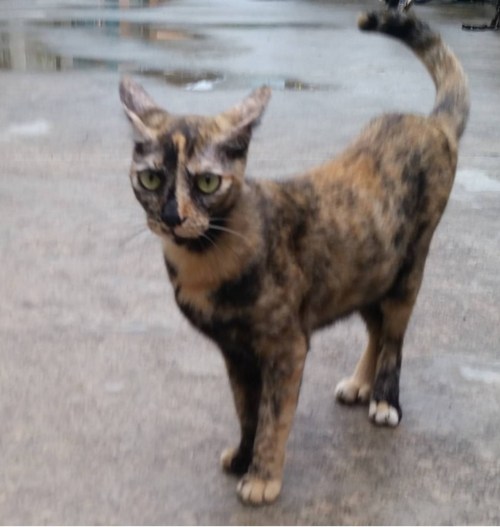 This photo was taken before she went missing. The first time we saw Healthy, we suspected that she was one of Gorgeous’ siblings. Gorgeous was brought home by us when she was four-months- old. Four tortiseshell kittens were found locked in a cage outside someone’s corridor with minimal food and water four years ago. They were later released. Gorgeous was one of them whom I first saw roaming around my feeding area. Next was Healthy…