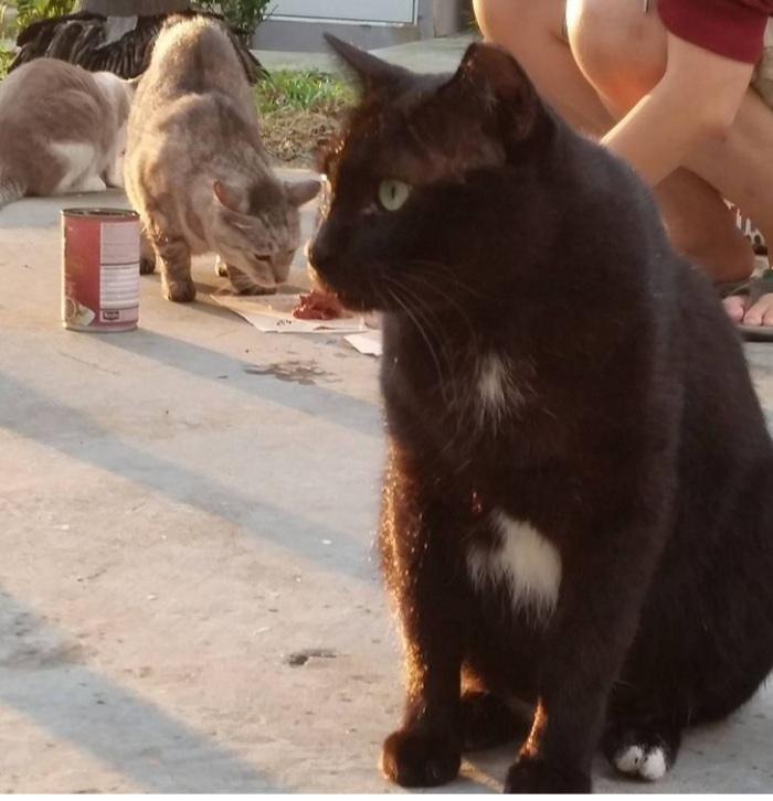 When we first saw Blackie many years back, he was not sterilised so we had him fixed. He got into fights and had a deep cut on his head. We sent him to the vet and had him stitched up and released him.