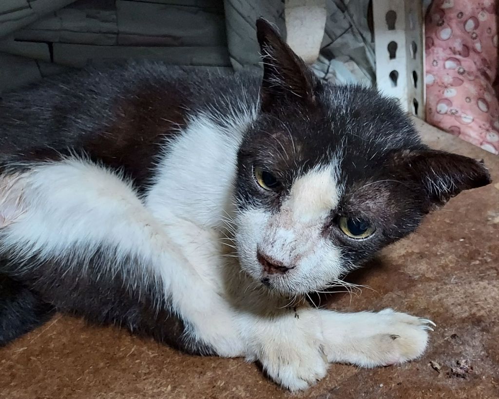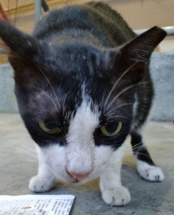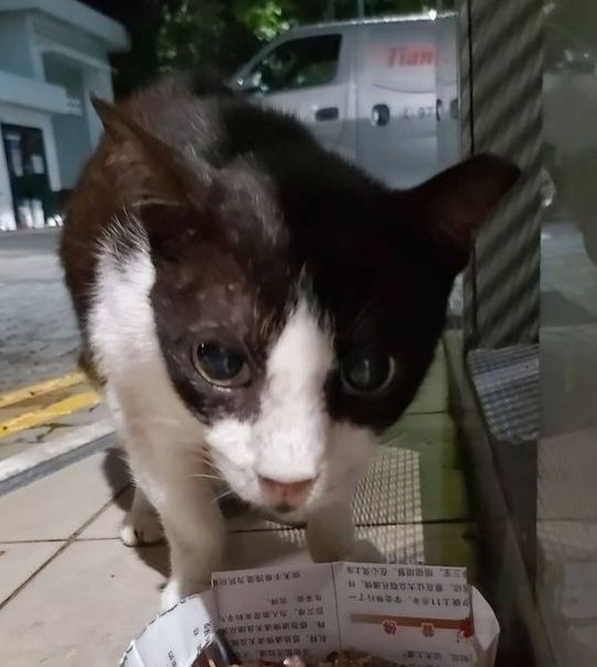 He was abandoned by Malay family. He fed him every day. He not only abandoned Dagu but also a few cats. Yes, I argued with him a little because the other cat he abandoned was very sick.