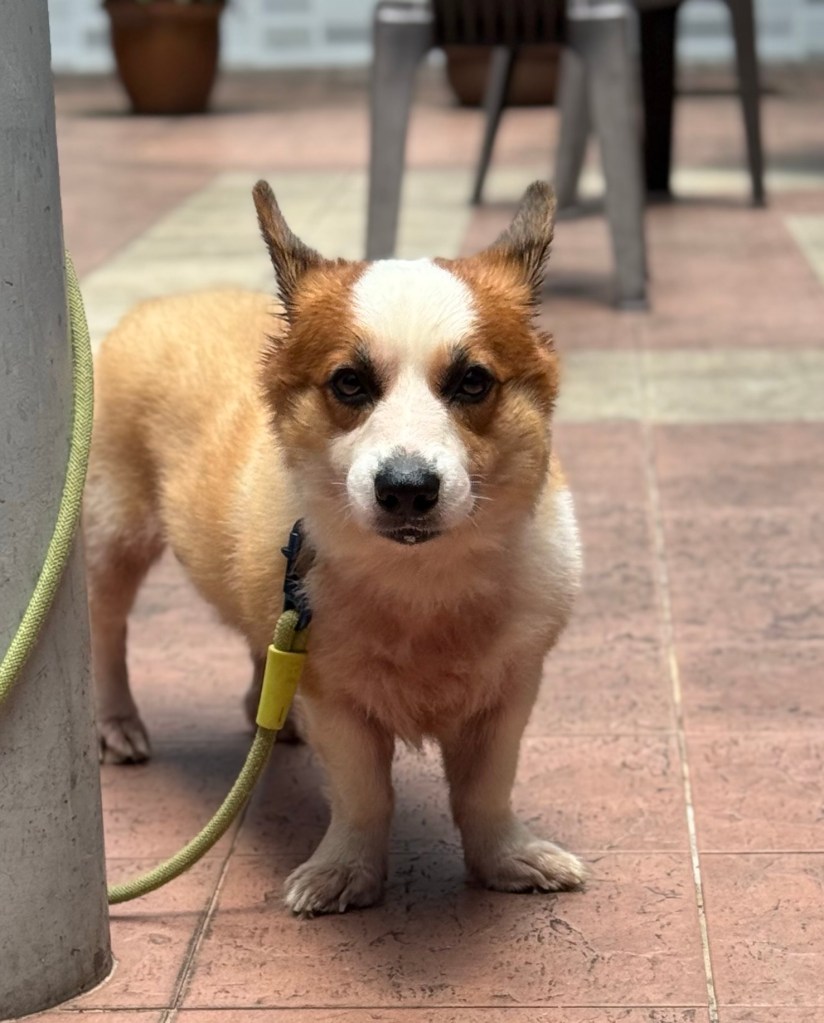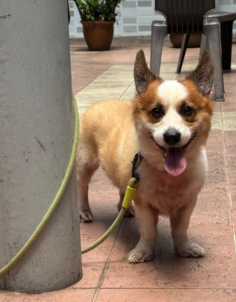 The fosterer calls him Baby. This is my first time walking dogs. Baby is a sweet boy who gets along well with humans but not with some dogs and perhaps all cats. Someone told me that the reason Baby cannot get along with other pets is because his owner did not take him to socialise with them.