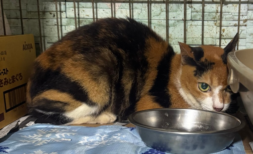 About six years ago, while I was searching for a missing cat who was carelessly lost by her adopter, I met a skinny calico, whom her current feeder named her Nomu.