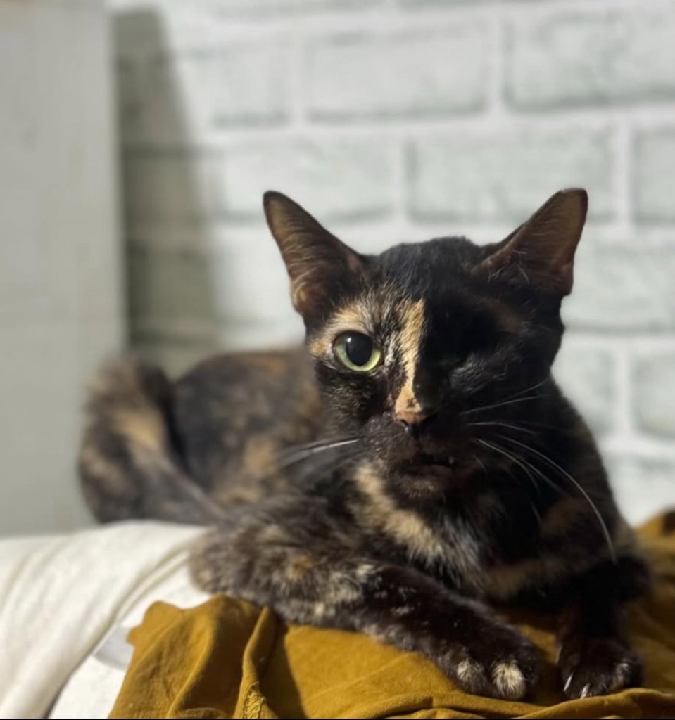 We did a private sterilisation for her, meaning her left ear will not be tipped. We ran a blood test and she is FIV/FeLV negative. She has been microchipped and had her first vaccination. Second vaccination is due next week.
