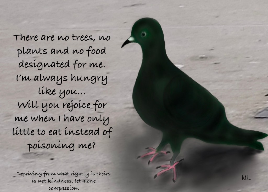 The place was like a dead town after they were being trapped. The residents seemed to be angry with the authorities as more food were being thrown out of their windows. There are many people who actually love the pigeons, they just don’t know how to voice their concerns. Pigeon feeders were blamed for the killing. Little does NParks know that they are the ones who push the people to feed them. The more they kill, the more the residents empathise with the pigeons and at the same time hate the authorities. Our authorities may continue to brainwash us, but those who have done good by feeding them understand there truly is no or not enough food for the pigeons. NParks lacks compassion. They are theory based. When compassion is lacking, one cannot fully understand and accept the views of others.