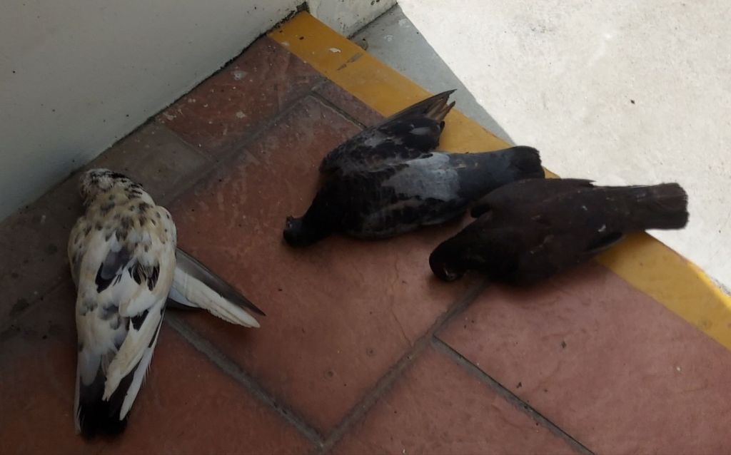 I called ACRES for help. The cleaners began sweeping the dead pigeons as well as the ones who were still struggling. I demanded them to release those who were still struggling. I left them in a box waiting for ACRES to pick them. Thanks ACRES for coming.